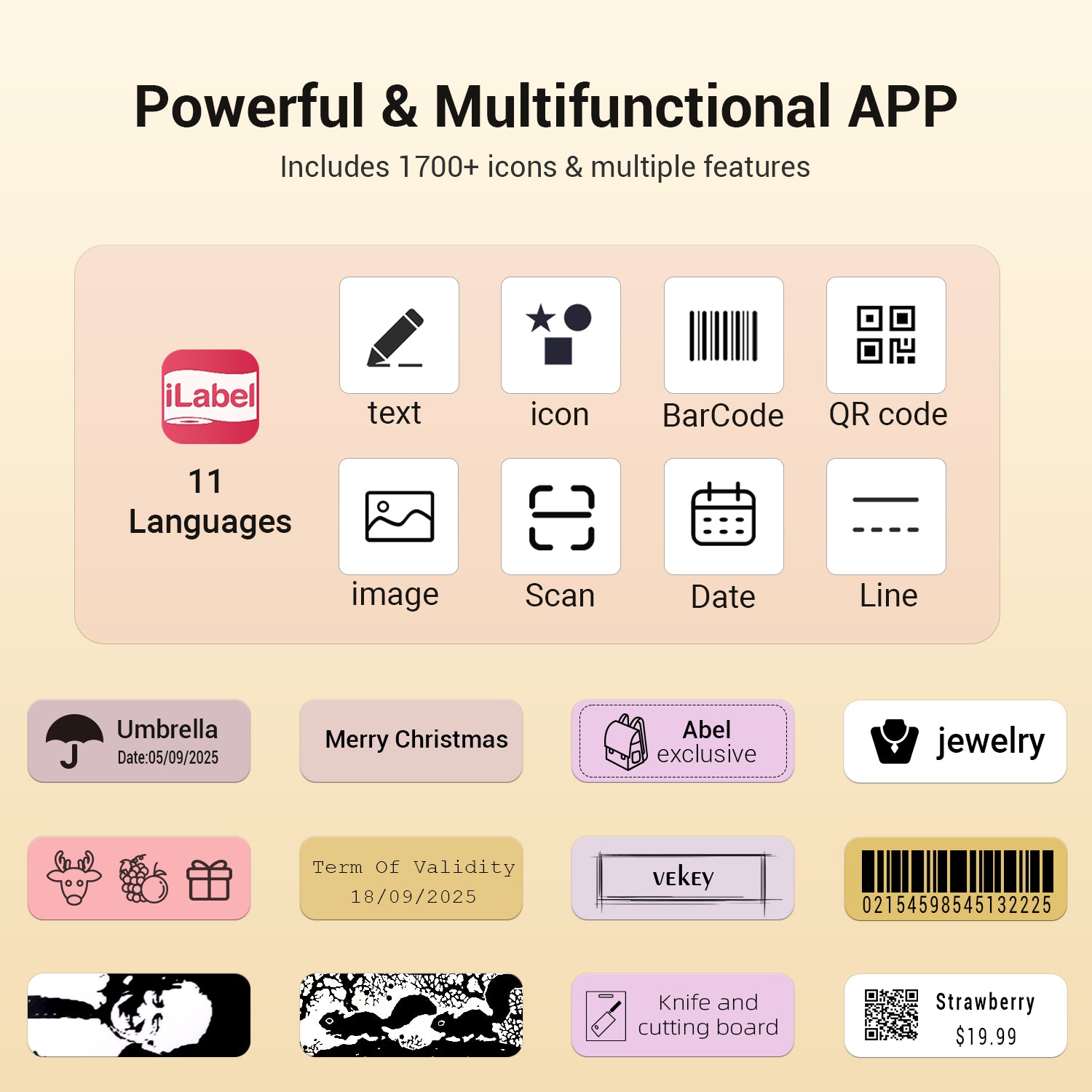 Absolutely! Using the free mobile app, you can add text, 1,700+ icons, borders, barcodes, QR codes, emojis, and date/time stamps. Create professional labels in minutes without any technical skills.