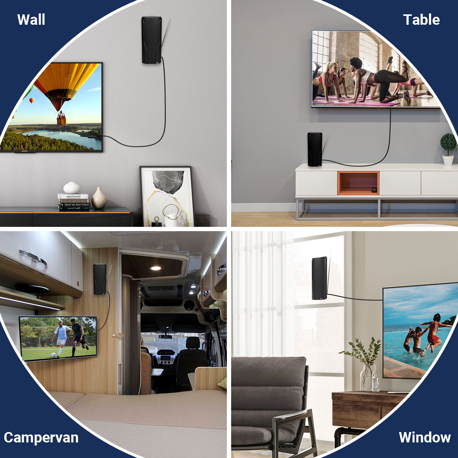 Yes, the DTA600 can be either freestanding or wall-mounted. It comes with a wall bracket and screws for secure installation, as well as a non-intrusive sticky pad option for those who prefer not to use screws. This versatility allows you to optimize the antenna’s placement for the best signal.