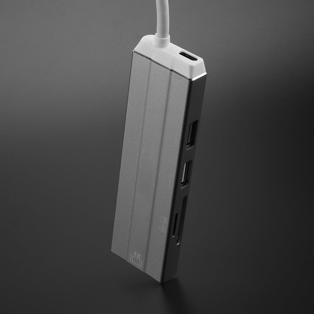 The HUB05 allows you to power Type-C devices with their original charger while simultaneously transferring video up to 4K HDMI to a TV, monitor or projector and transferring files via the USB 3.0 ports and memory card slots.