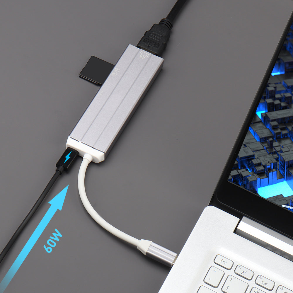 - USB-C to HDMI Adapter with Micro SD Card Reader, Power Delivery, USB 3.0 - 7 Ports - HUB05