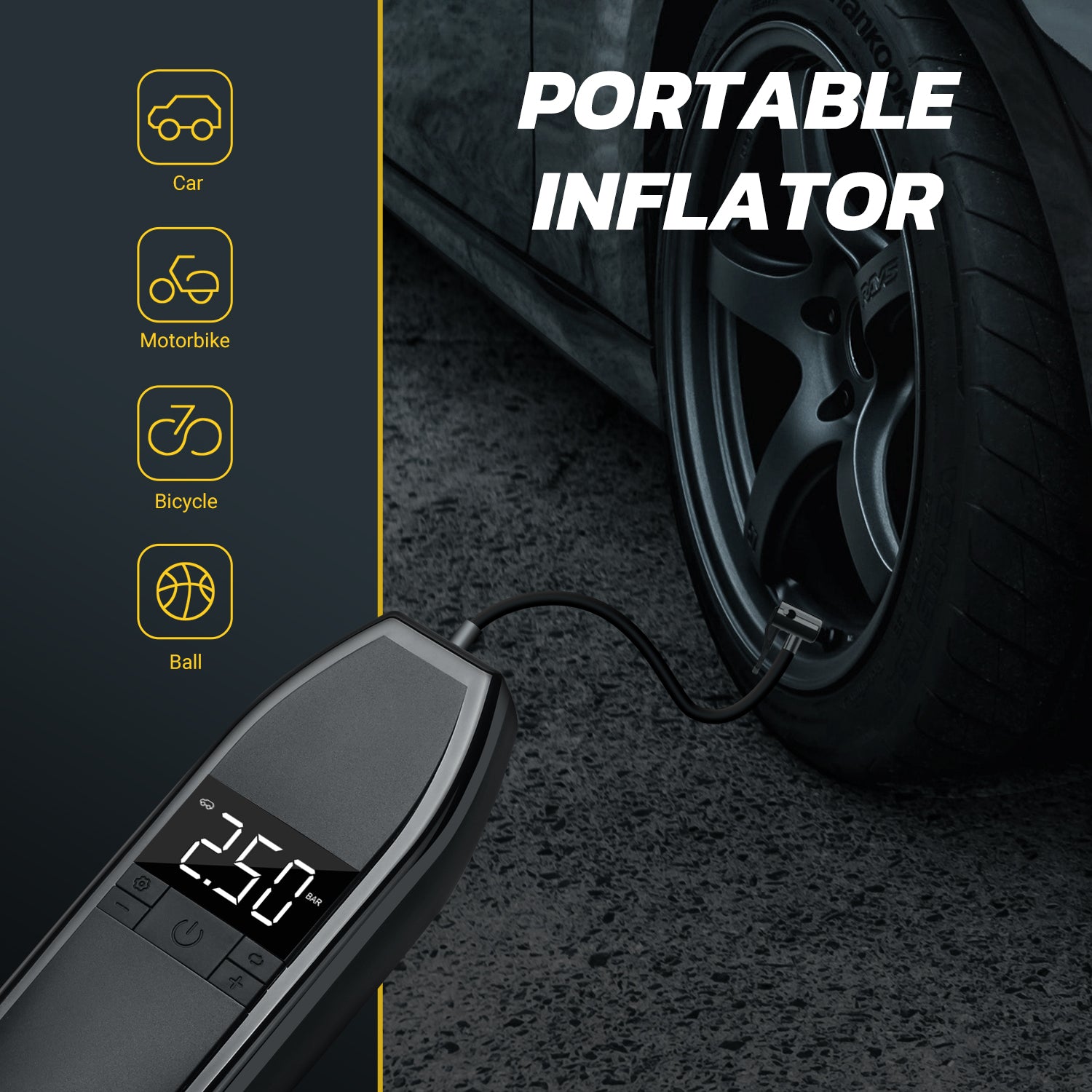 - Portable Air Compressor Rechargeable Automatic Tyre Handheld Pump - PUM300