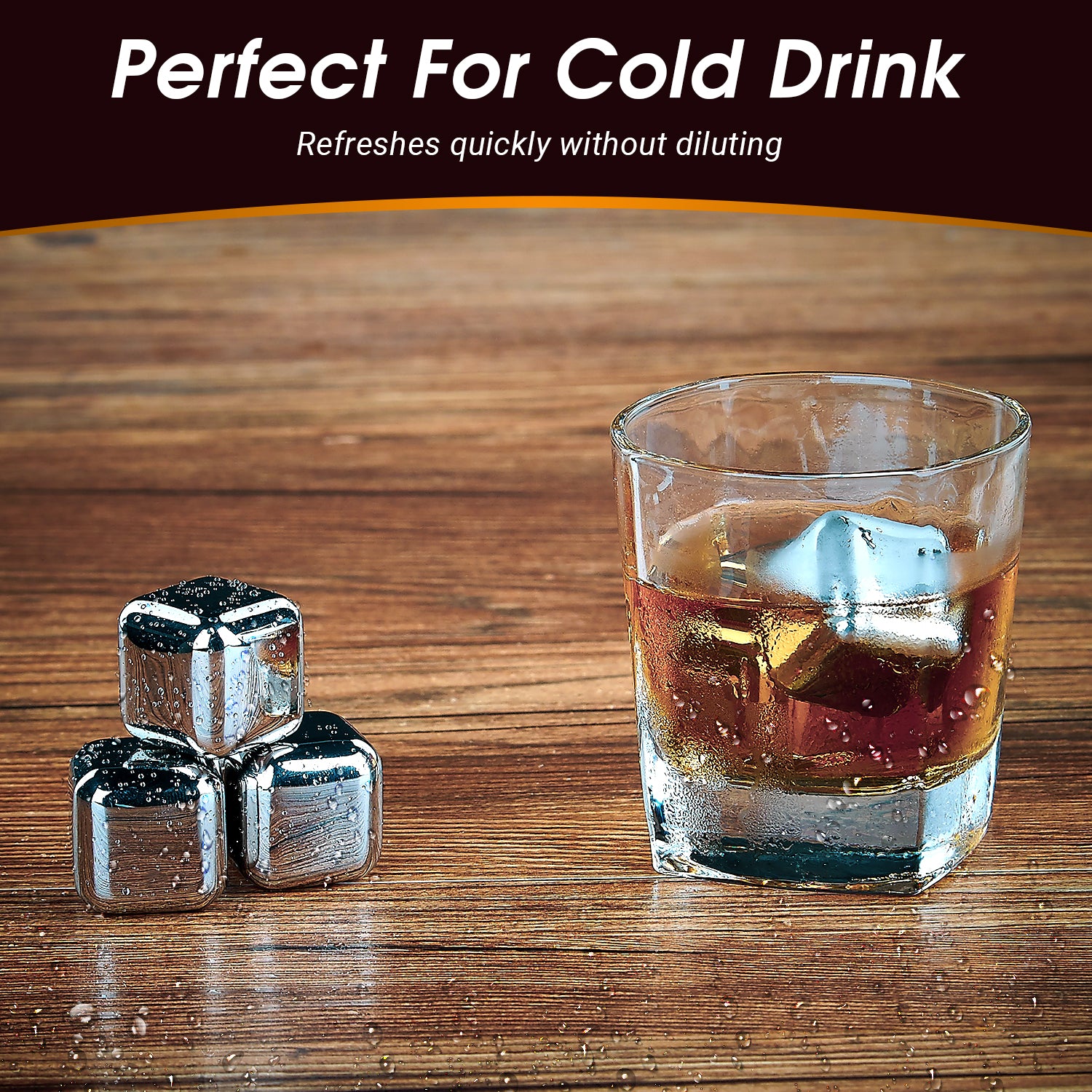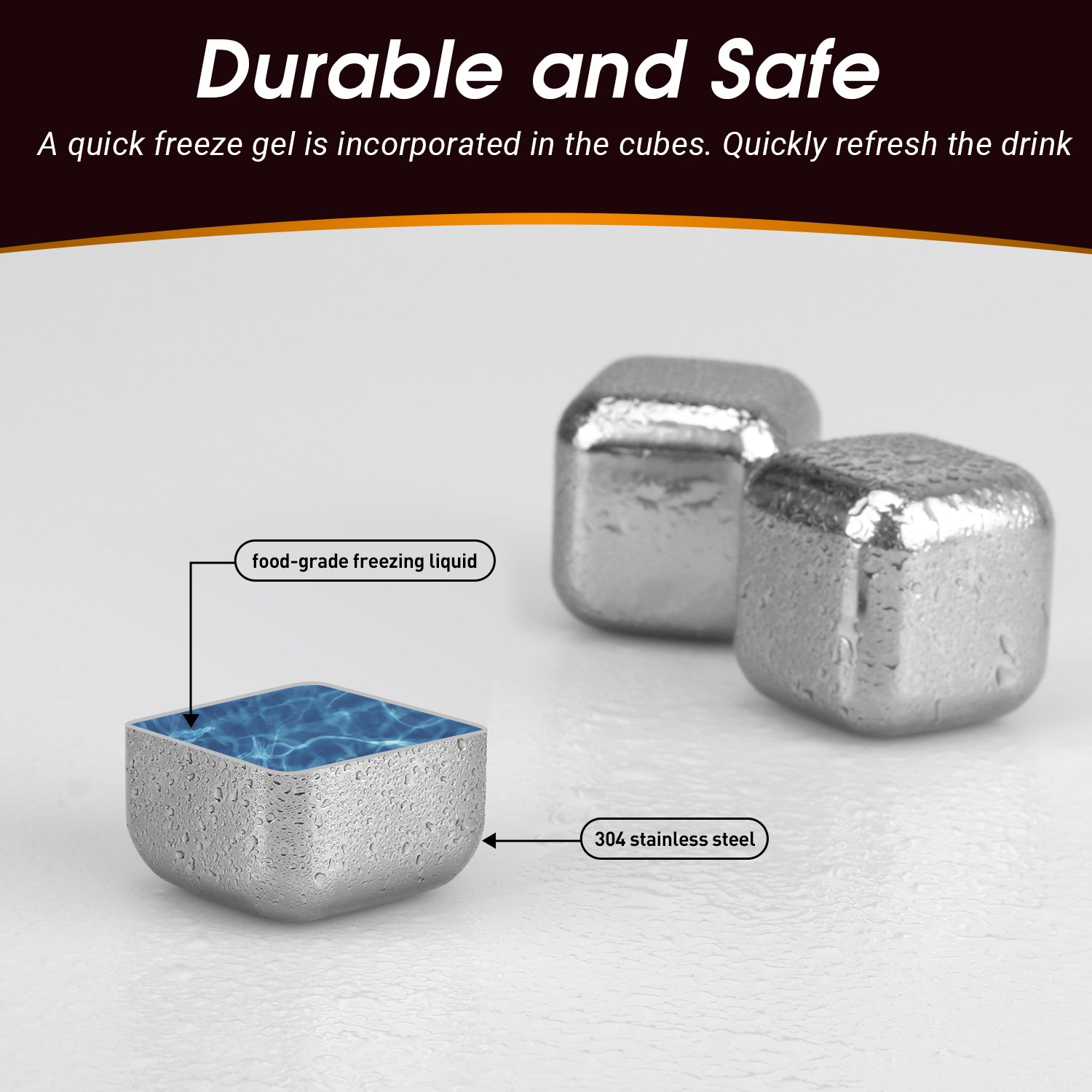 - 8 Pieces Stainless Steel Ice Cubes Stone Rocks, Reusable Ice Cubes with Storage Case and Tongs