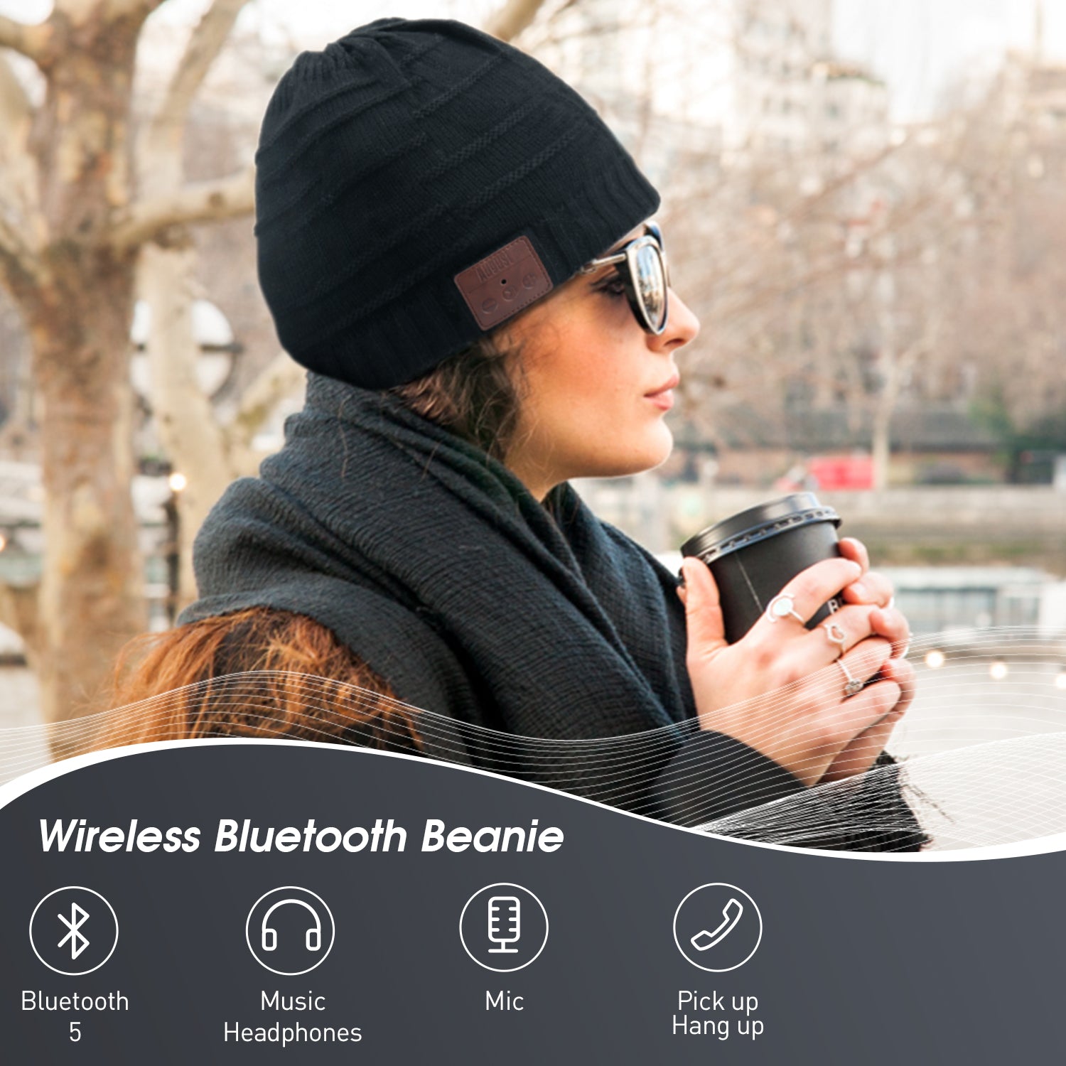 August Bluetooth Beanie Hat Headphones