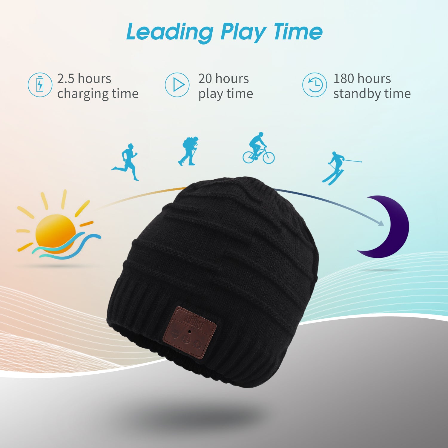 Focus on your day and let the beanie handle itself for the rest. With 20 hours of playback time (180 hours of standby time!) per charge, the beanie will be ready and waiting for your commutes, lunch breaks, sudden trips out and weekends away all the same.