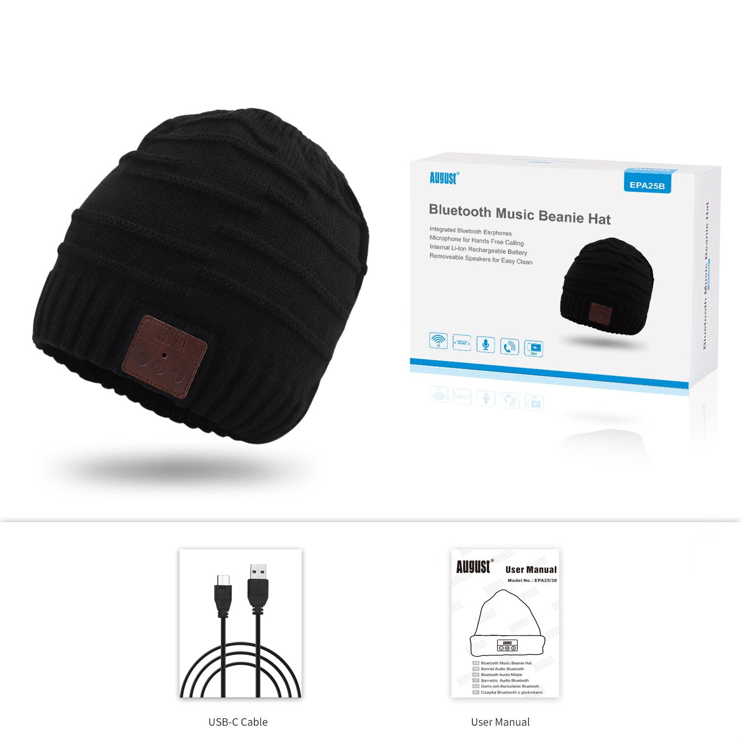 Stay warm and stylish with the EPA25 Bluetooth Beanie Hat, the ultimate winter Bluetooth beanie with acrylic wool and wireless headphone connectivity. The August EPA25 beanie provides a stable Bluetooth connection, allowing seamless music streaming and hands-free calls through built-in speakers and a microphone.